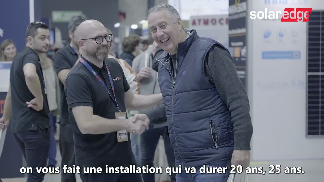 Cette prestation s’est déroulée sur une journée, avec un dispositif technique complet : deux techniciens de notre équipe étaient présents sur site : un photographe professionnel pour valoriser le stand, les échanges avec les visiteurs, les collaborateurs SolarEdge et l’ambiance du salon, et un cadreur pour capter des plans d’illustration dynamiques et réaliser des interviews micro-trottoir grâce à un micro sans fil, directement auprès des visiteurs, partenaires et membres de l’équipe.